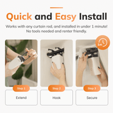 Works front or behind curtain — compatible with virtually any standard curtain track, rod, or U-rail.