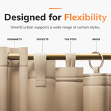 The smartest upgrade for any curtain rod or track. Installs in under 60 seconds without tools and runs up to 8 months on rechargeable batteries. Works in front-mount or back-mount position.