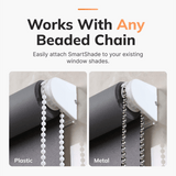 Attaches to any roller shade with a looped beaded chain — no shade replacement needed.